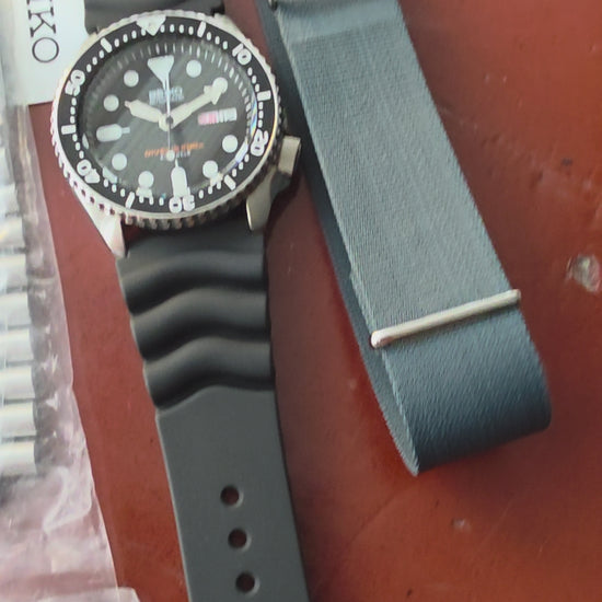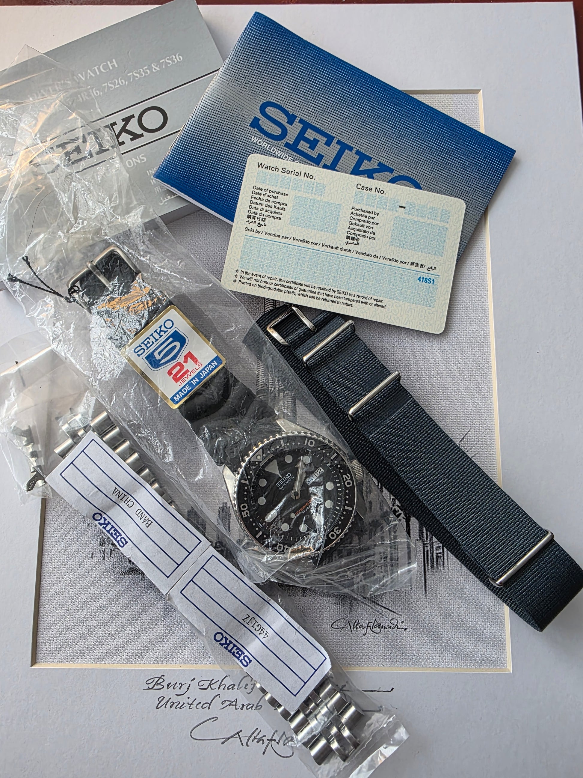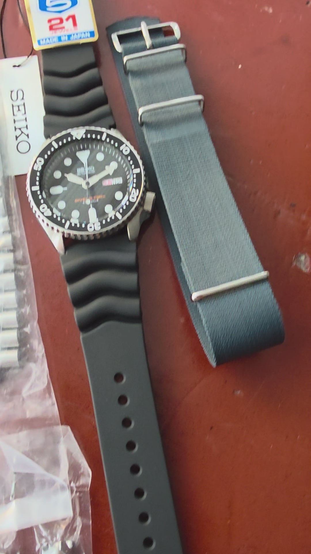 A museum piece. NOS SKX007 comes in the factory Rubber bracelet, also included is Seiko Jubille bracelet & a 22mm Phoenix Admiralty Grey Nylon Strap.