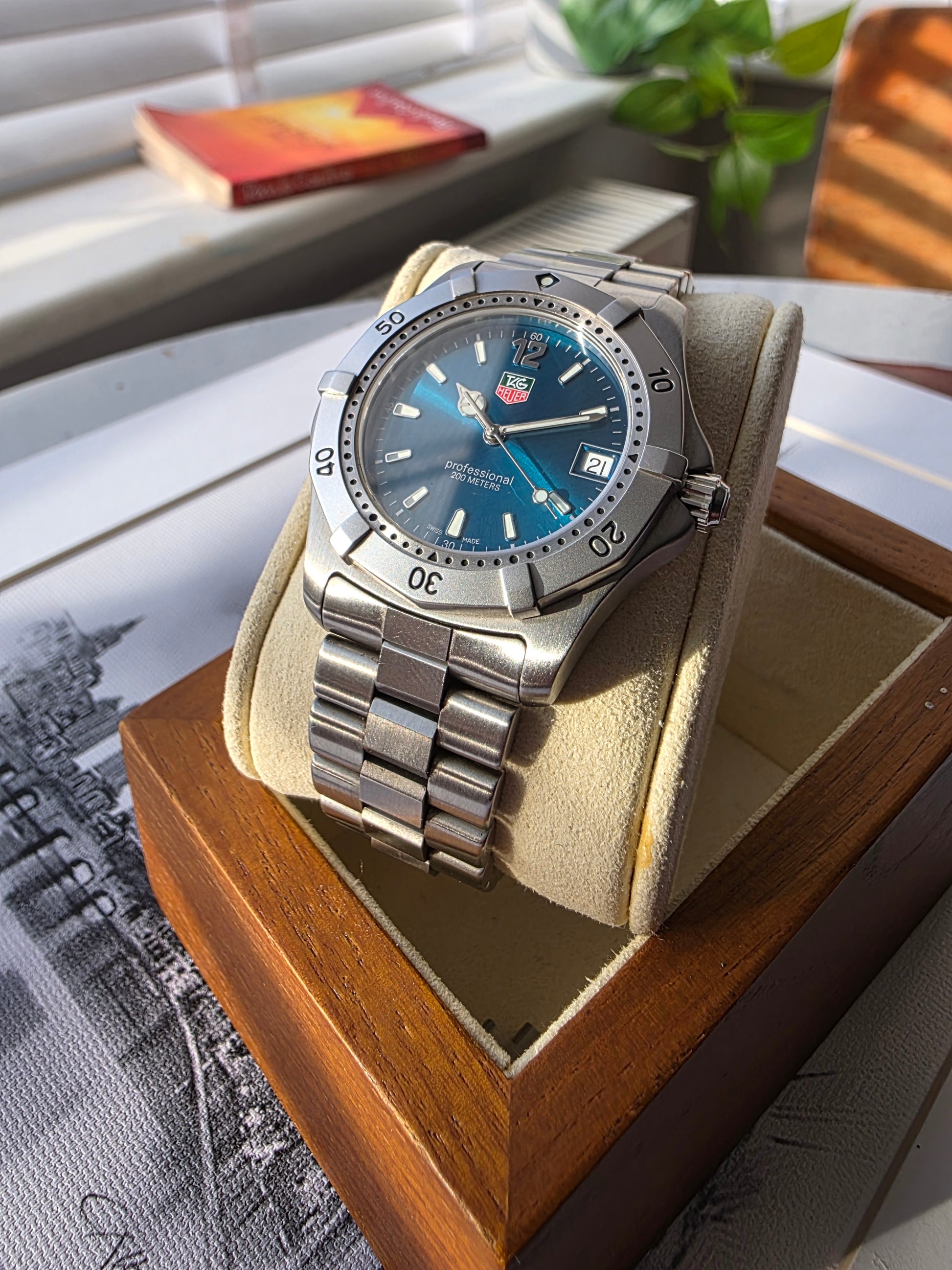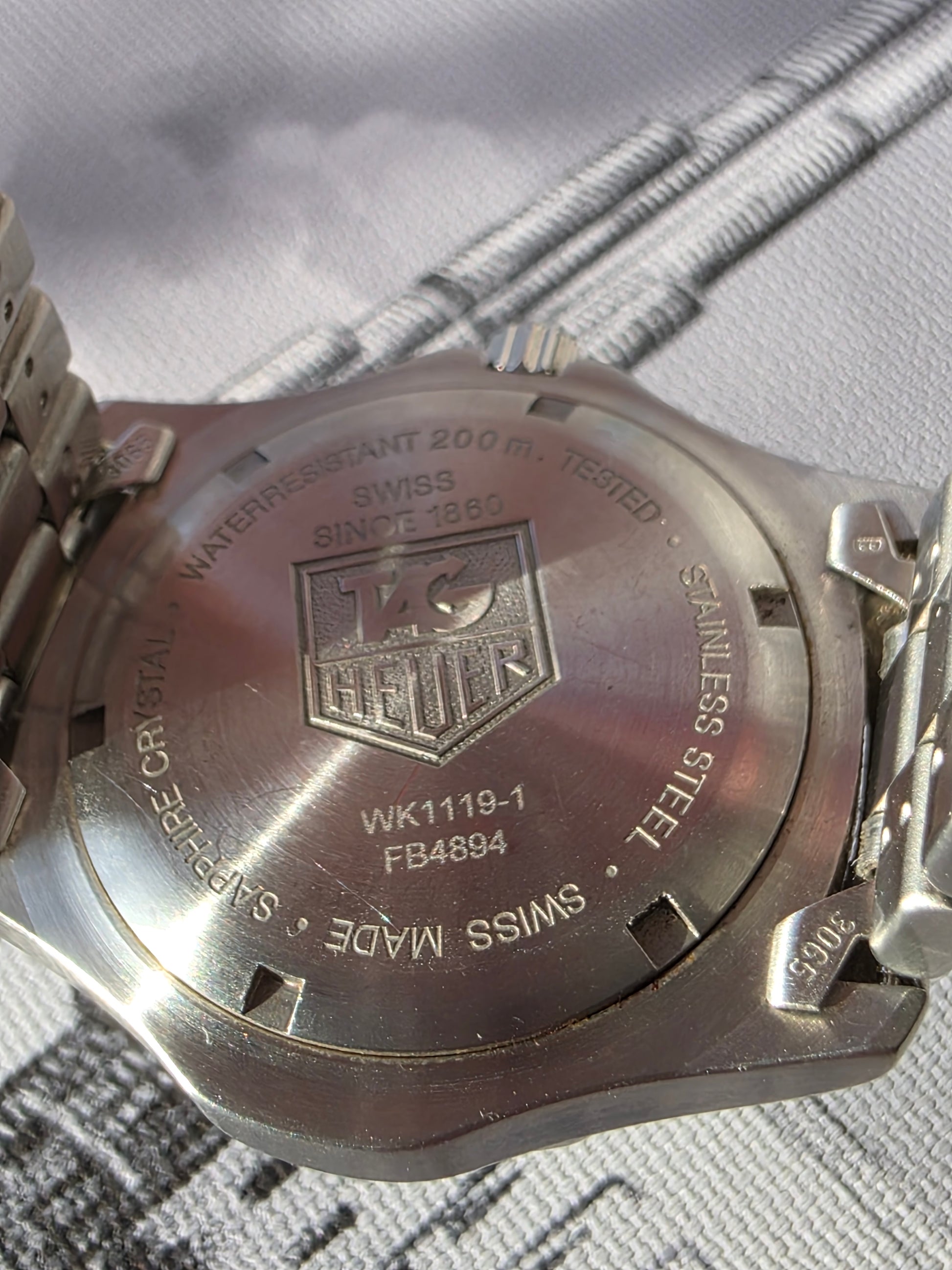Rare green-dial TAG Heuer WK1119-0, part of the 2000 Series Professional divers. A striking and collectible colour variant with classic TAG design and reliable Swiss quartz movement.